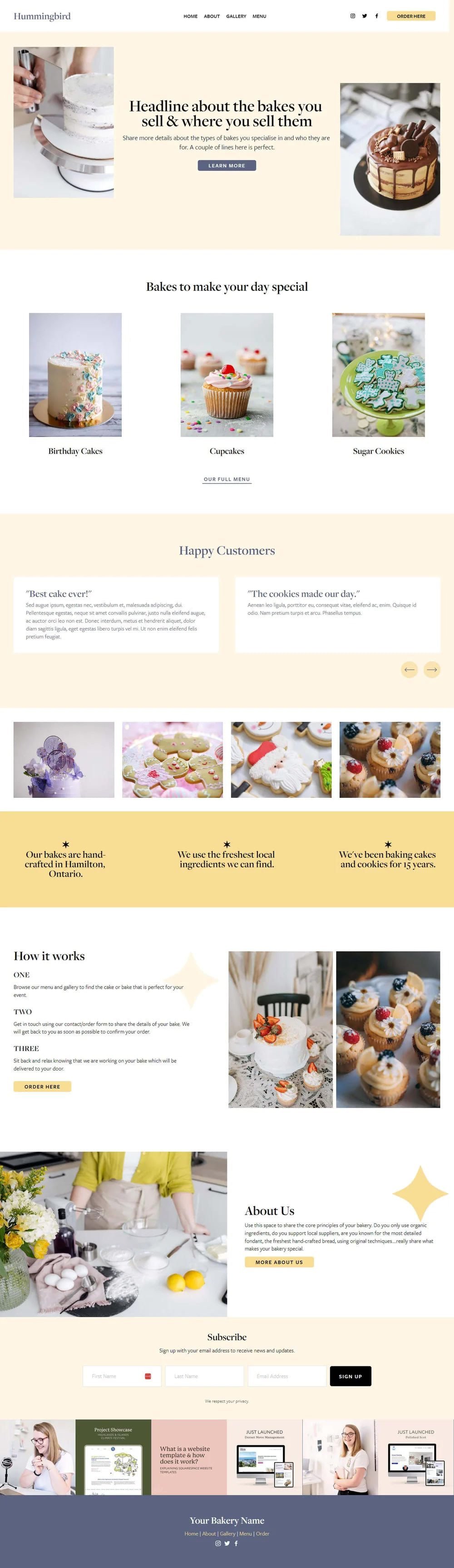 This template does a great job of walking customers through how to order from you, which is huge for custom cakes.