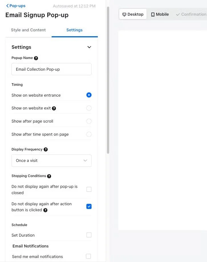 Choose Where to Show: Decide if you want your pop-up to appear on desktop, mobile, or both – you have the flexibility to choose what works best for your audience.