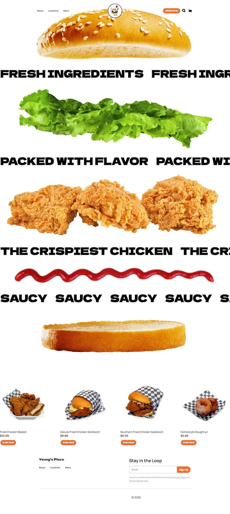 Conversion-friendly sections (think: menus, galleries, product grids).