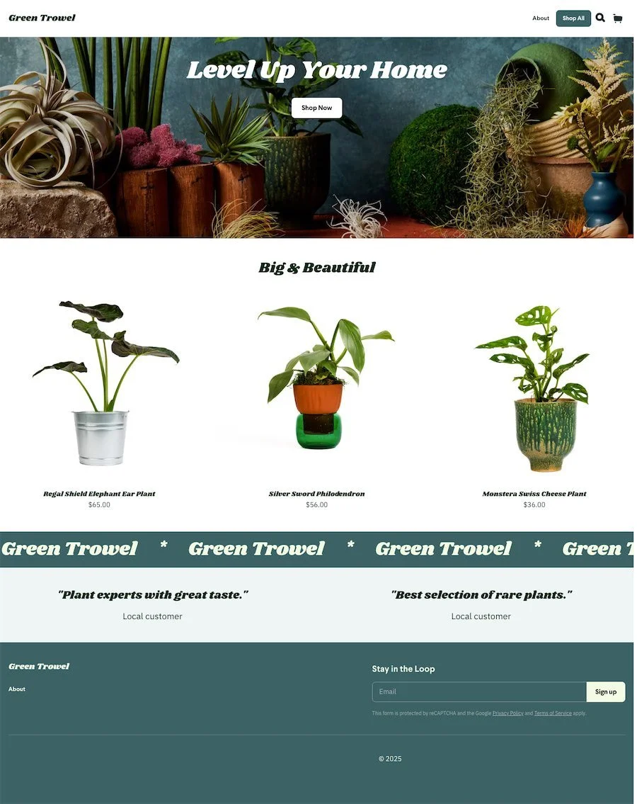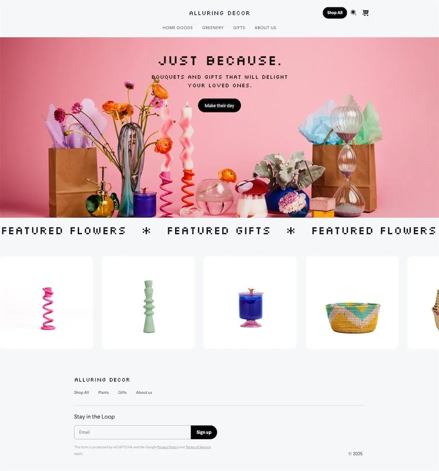 For businesses selling physical products online or in-store. These templates highlight featured collections, product grids, and different fulfillment/order flows.