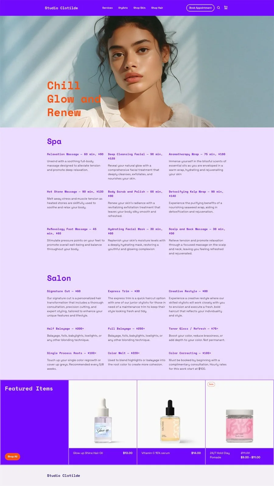 Built for professionals like salons, massage therapists, coaches, and consultants. Service lists, booking buttons (for Square Appointments), and testimonials are front and center.