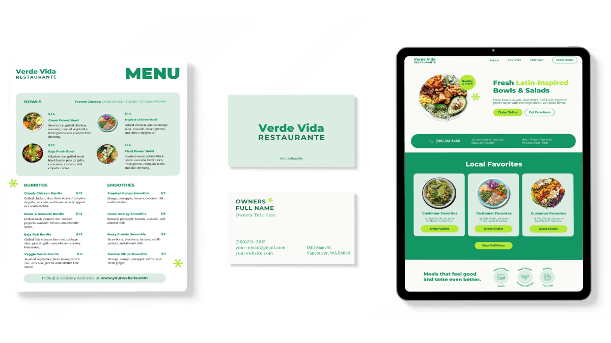 Meanwhile, your business card is a DIY job from 2 years ago, your menu lives in a Google Doc, and your "website" is... an Instagram link.